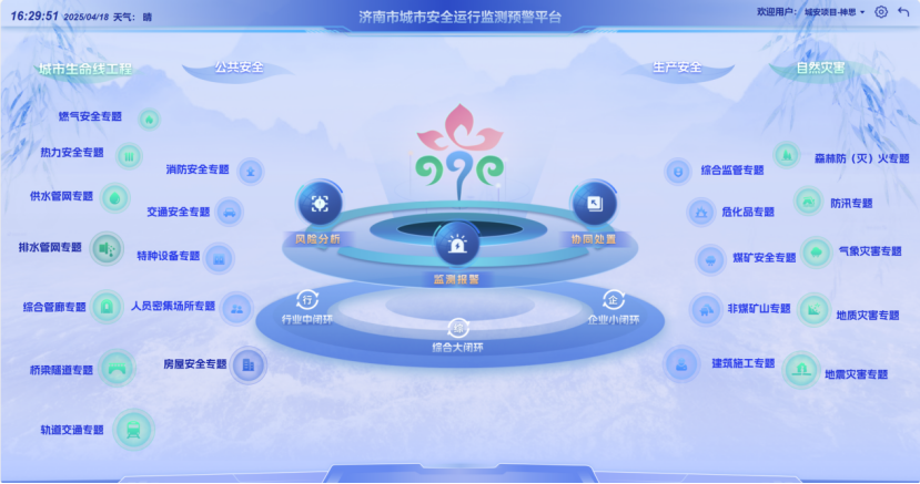 神思電子作為濟南市人工智能產(chǎn)業(yè)鏈主企業(yè),在智慧城市建設過程中持續(xù)深化數(shù)據(jù)應用與創(chuàng)新,聚焦城市安全運行,以提升城市安全風險監(jiān)測預警和應急處置能力為目標,構建風險監(jiān)測“一張網(wǎng)”,全面感知城市生命線、公共安全、生產(chǎn)安全和自然災害四大領域安全風險。