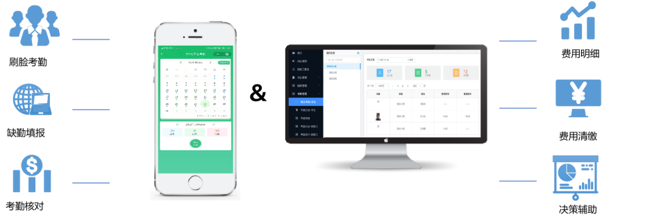 線上線下考勤相結(jié)合,實(shí)現(xiàn)智能考勤管理。